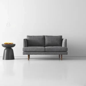 Mid-Century Modern 2-Seater Sofa in Dark Grey Fabric with Solid Wood Legs