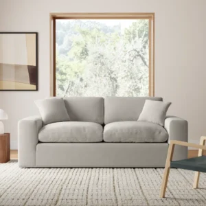 Modern 2-Seater Sofa in Soft Linen Blend Fabric – 82” Wide Cream Couch with Deep Cushions