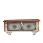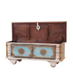 Elevate your home storage with the Preet Gallery Distressed Mango Wood Blanket Chest, a masterfully handcrafted trunk featuring elegant brass detailing. Designed to blend rustic charm with sophisticated craftsmanship, this spacious chest measures 116 cm wide x 40 cm deep x 45 cm high (45.7″ W x 15.7″ D x 17.7″ H), offering ample room for storing blankets, linens, pillows, or keepsakes. The distressed wood finish creates a warm, vintage look, while the brass accents add a touch of heritage elegance.