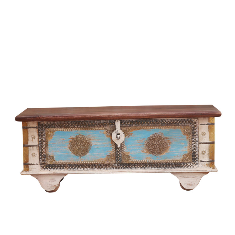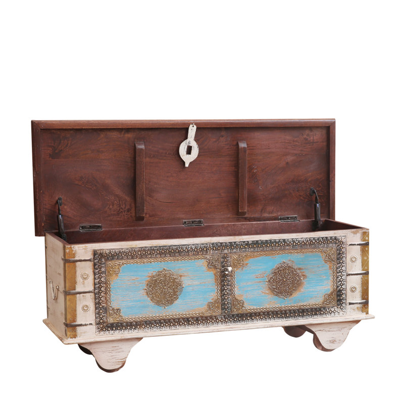 Distressed Mango Wood Blanket Chest with Brass Detailing – Storage Trunk